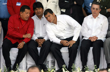 Ecuador, Rafael Correa, Kolumbien, Álvaro Uribe, und Venezuela, Hugo Chávez, die