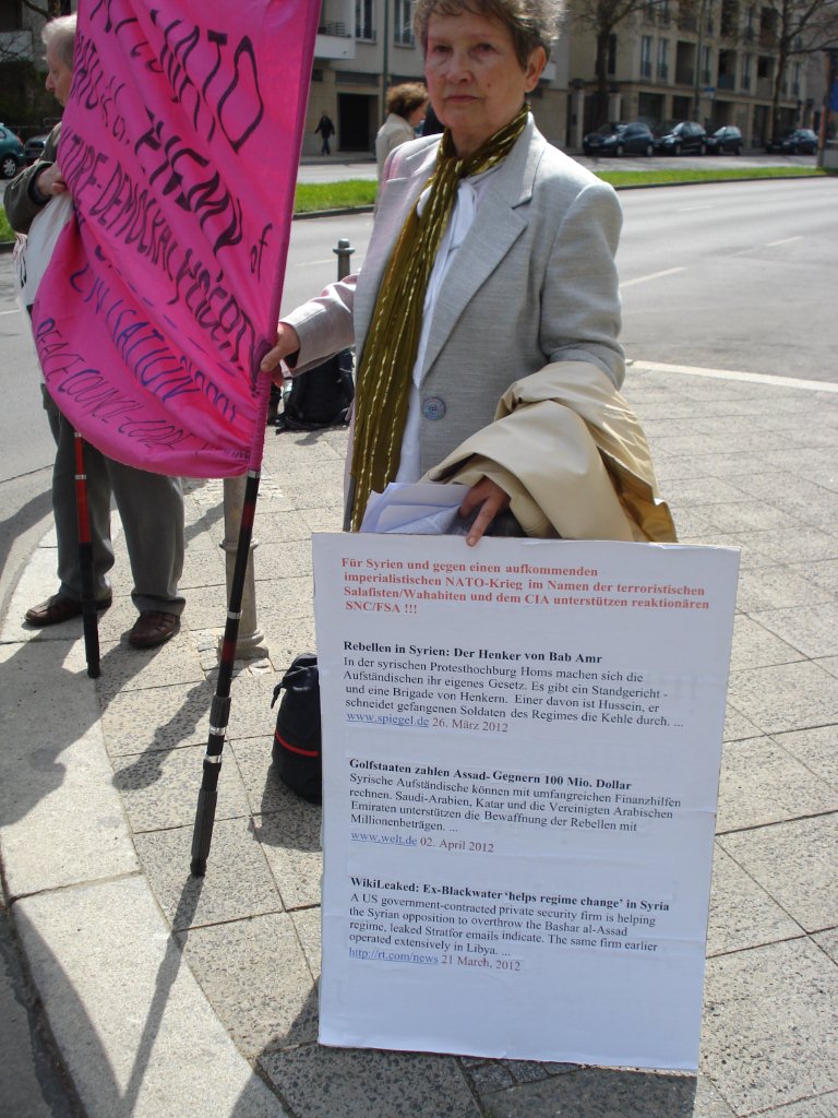 Rauchstrasse 25, zu einer Lesung gegen die Assad-Regierung aufgerufen.